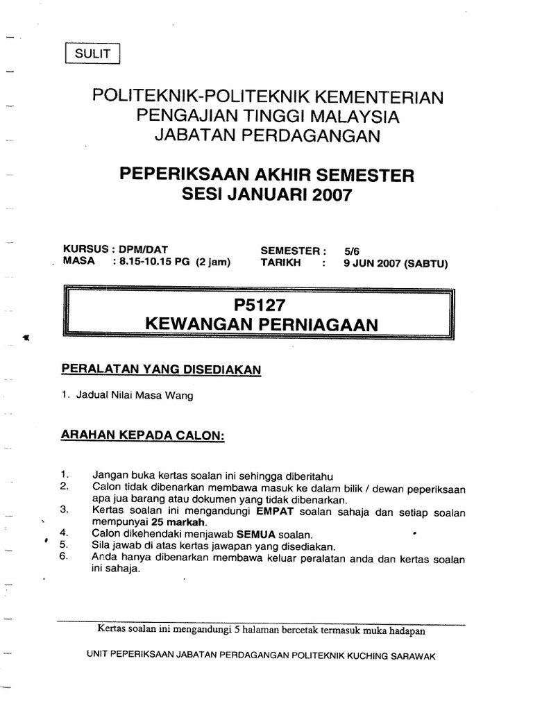 Koleksi Soalan Peperiksaan Politeknik Jabatan Perdagangan : Contoh soalan final exam politeknik jabatan perdagangan.